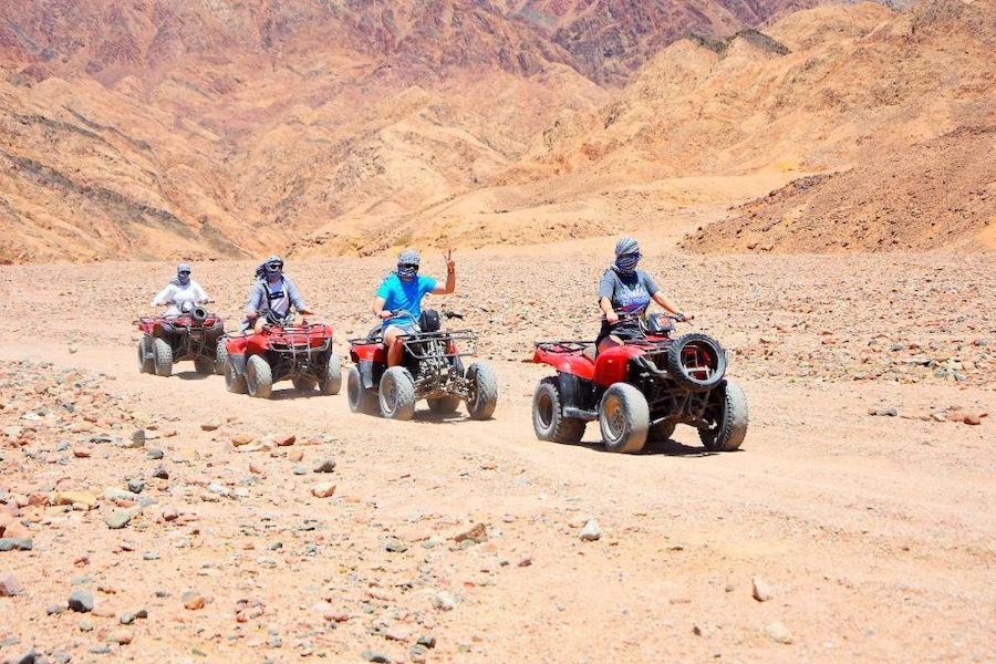 Explore two of Sinai’s most iconic destinations in one day — the magical Colored Canyon and the world-famous Blue Hole Dahab. Ride a Jeep through the desert, enjoy snorkeling, camel riding, quad adventure, and a Bedouin lunch by the sea.