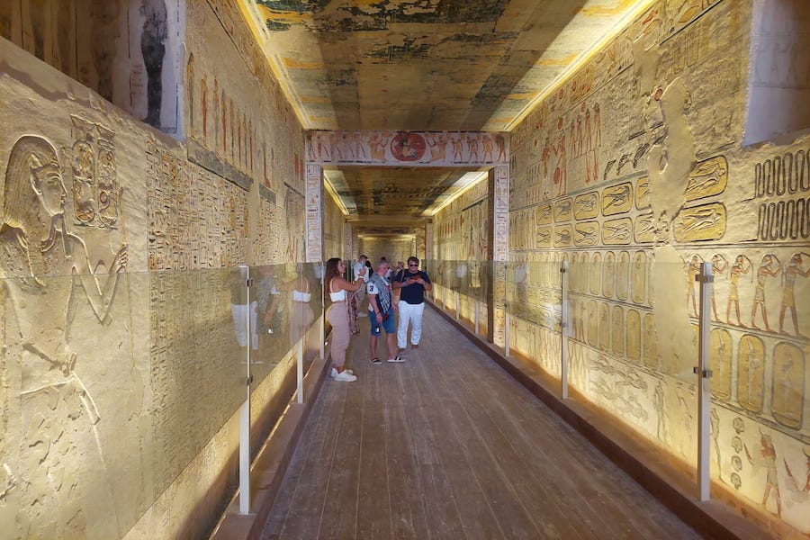This sacred valley holds over 63 registered tombs, beautifully decorated with hieroglyphics and colorful paintings depicting the pharaoh’s journey to the afterlife — a true masterpiece of Egyptian art.